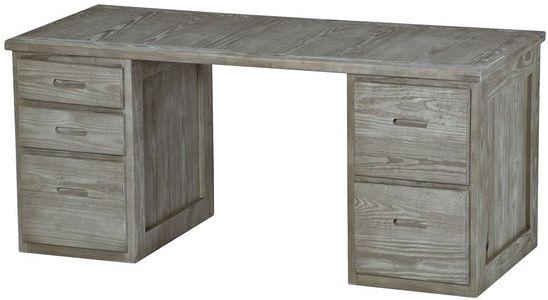 Home Office desk with 2 file drawers on the right side and 3 drawers on the left side. Consider adding a lacquer finish on the top for increased moisture resistance and cleanability. Desk shelves are available to add to your desk.Read More