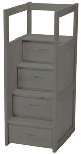 The staircase works well with all CD bunk beds - as well as your existing bunk bed. The staircase can be placed on either end of the bunk bed. Each drawer is the full depth of the cabinet. The bottom drawer rolls out on casters for full access!