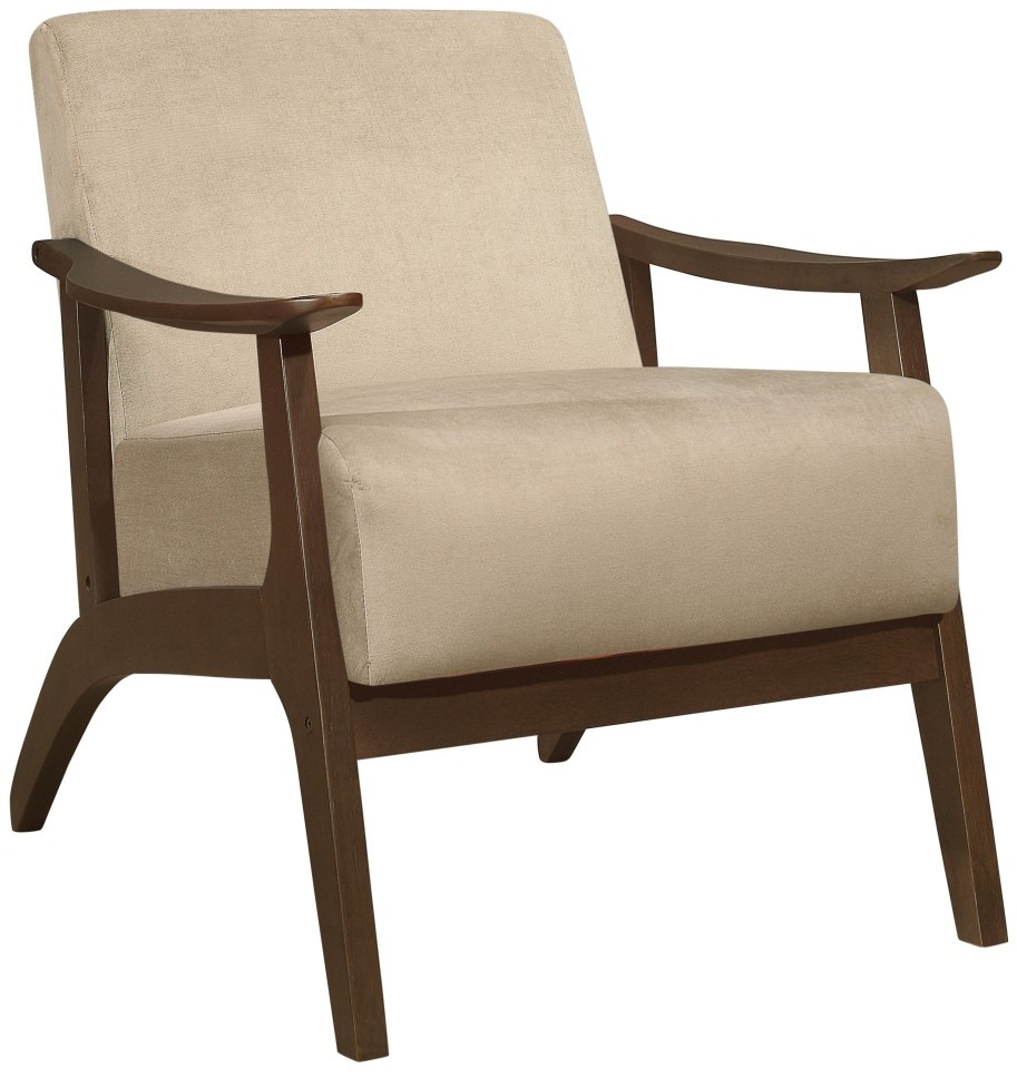 The frame of the Carlson Collection recalls a time when simplicity of profile was the height of style. The streamlined design of the chair's subtly sloped wood arms and legs is finished in dark walnut which serves to highlight the light brown velvet covering.Read More