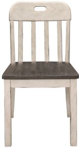 The wood chairs feature a notch hole for ease of movement and the two-tone finish that carries over from the table.Read More