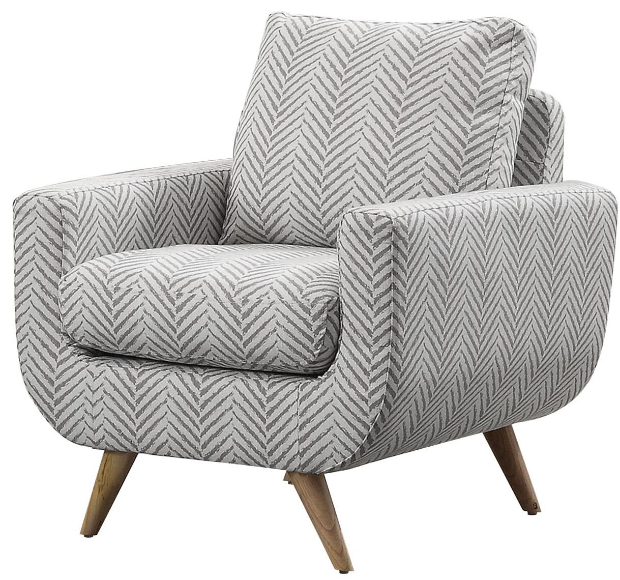 Offered as a stand-alone accent to complement your home’s décor or as part of the full Deryn Collection, the chair is featured in a modern gray or teal herringbone pattern. Natural tone finished legs support the frame while tailored stitch tufting lends further accent to this thoroughly modern collection.