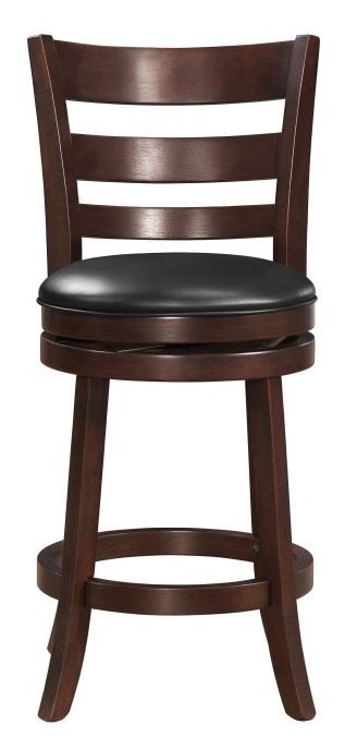 Bar height designed chair with a cherry finish and 360 degree swivel seat from the Edmond collection. With its solid wood frame and comfortable footrest its a great addition to any kitchen decor.Read More