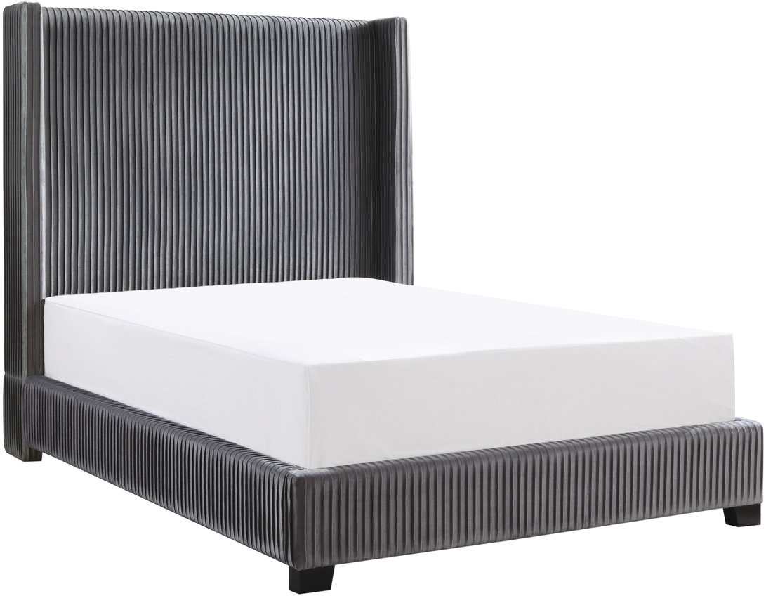 The stately profile of the Glenbury Collection will provide a dramatic statement to the design of your bedroom. The fully upholstered queen size bed features pleated dark gray velvet covering and mansion shelter headboard, creating a modern traditional look that defines your personal style.Read More