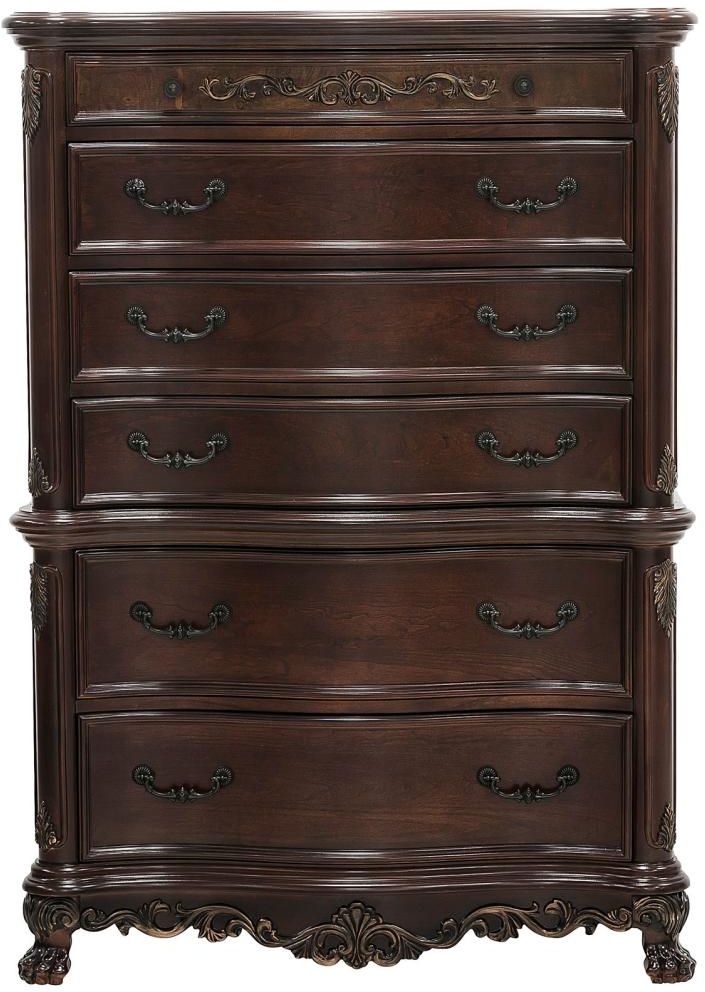 Walking into the bedroom that is occupied by the Deryn Park Collection immediately displays your love of the traditional aesthetic. Stately from every angle, sophisticated design elements blend to create this beautiful collection. With two bed options – A graceful sleigh bed or stately poster bed – the collection allows you the flexibility to fit the scale of your bedroom and the design to accommodate your personal style. Design elements include burl inlay, traditional bale and knob hardware, claw feet and shell motifs. The cherry finish is highlighted by gold tipping that accentuates the traditional feel of elegant Deryn Park Collection.Read More