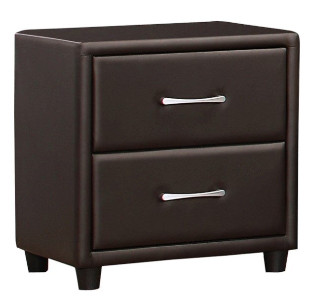 The contemporary design of the Lorenzi Collection is enhanced by the addition of the durable dark brown vinyl covering that encases each piece in the collection. Painted gray hardware provides a distinct contrast to the fabric’s finish. Scaled for urban living, this collection will prove to be a unique and stylish addition to your master, youth, and guest bedrooms. The collection is offered in two colour options- Black and Dark Brown.Read More