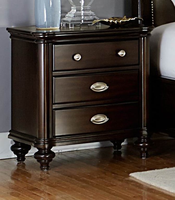 Refined elegance is exemplified in the design of the Marston Collection. Blending classic design elements to create a warm and welcoming bedroom. Each piece in the collection features turned feet and high polished oval bale pull and knob hardware. The neutral toned fabric inserts of the headboard and the padded footboard rail feature nailhead accent. Drawer storage features prominently on the footboard, offering that extra functional space that you need. The classic dark cherry finish further lends to the modern traditional look of the Marston Collection.Read More