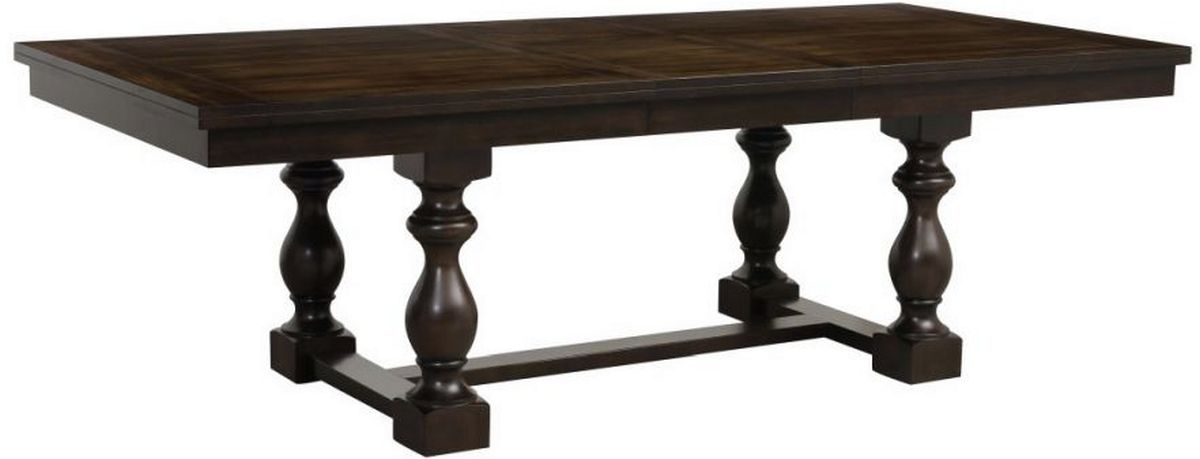 Blending the look of country style with the popular modern industrial aesthetic, the Yates Collection manages to achieve a look that is unique unto itself.?The turned legs of the trestle base rise to support the burnished dark oak table top.Read More
