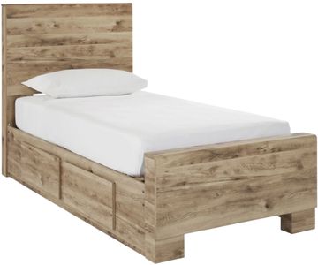 Inspired by natural beauty, refined to perfection. With its warm and inviting golden rustic finish, this twin panel bed with storage brings cozy outdoor vibes to your bedroom. Two storage drawers keep clothes, clutter or linens neatly tucked away, adding a layer of functionality to the simple, streamlined design.Read More